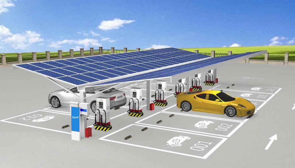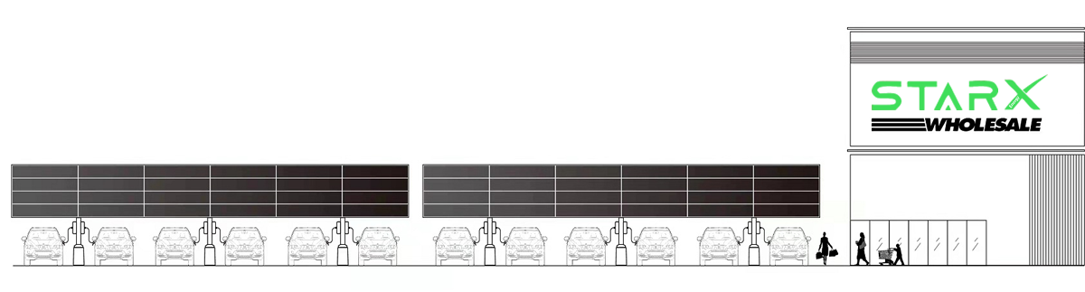 A flexible Level 2 charging solution integrated with solar canopies and battery storage, the system supports grid connection, peak shaving, and valley charging. Typical configuration includes 5.45 kW solar generation, 30 kWh storage, and 12 kW AC charging capacity.